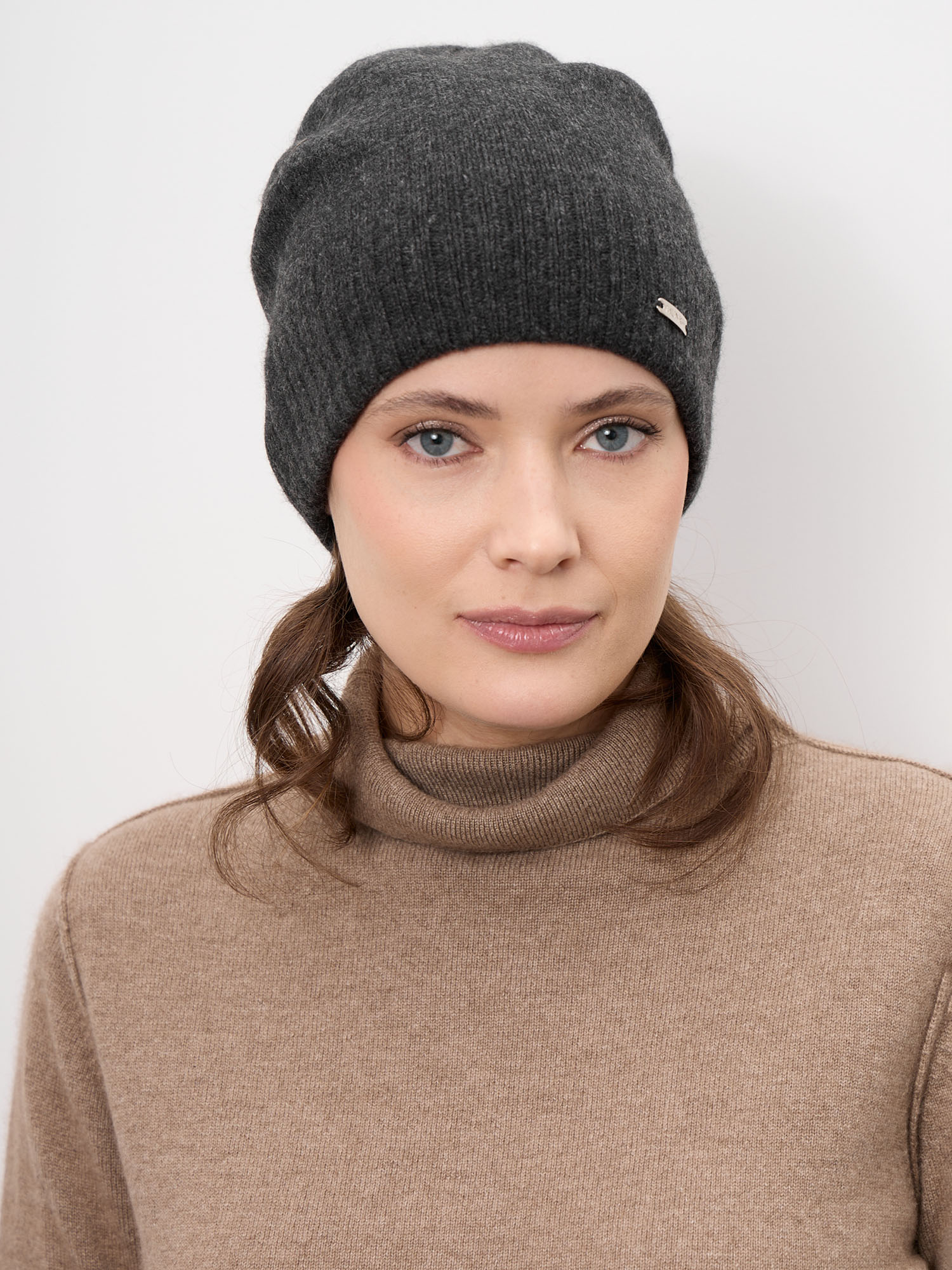 Лаконичная шапка из натурального кашемира в универсальном графитовом оттенке — идеальный аксессуар для холодного сезона. Сдержанный дизайн и благородный цвет делают модель базовой и легко сочетаемой с верхней одеждой любого стиля — от классики до casual. Шапка подчёркивает аккуратный образ и добавляет ощущение утончённого комфорта.