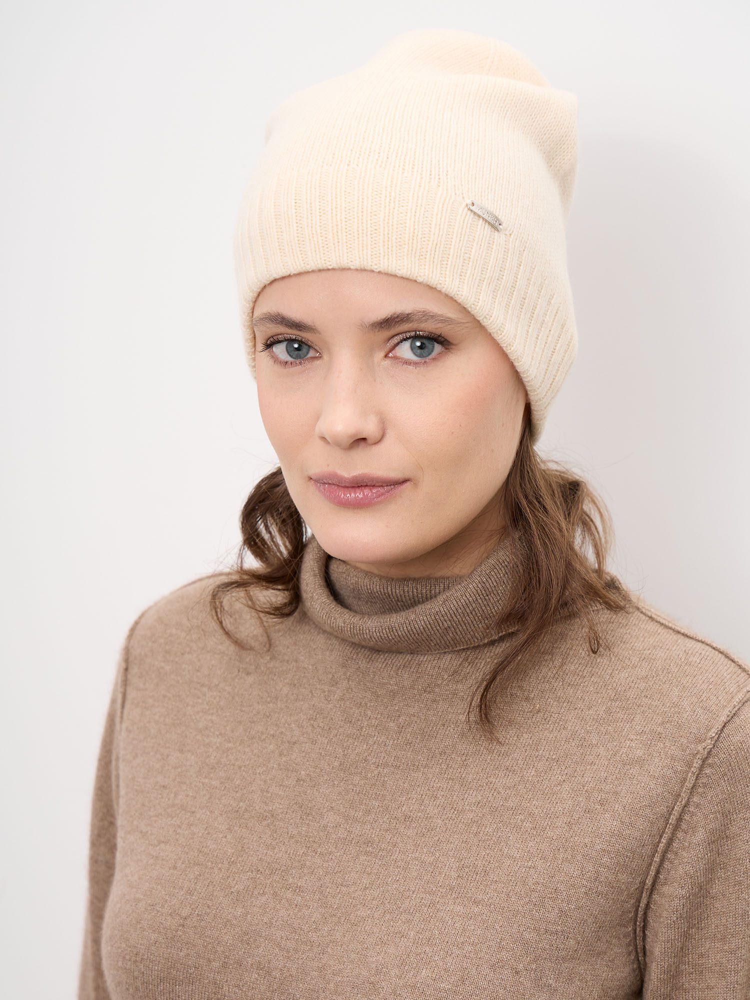 Шапка из кашемира 04286 кремовая