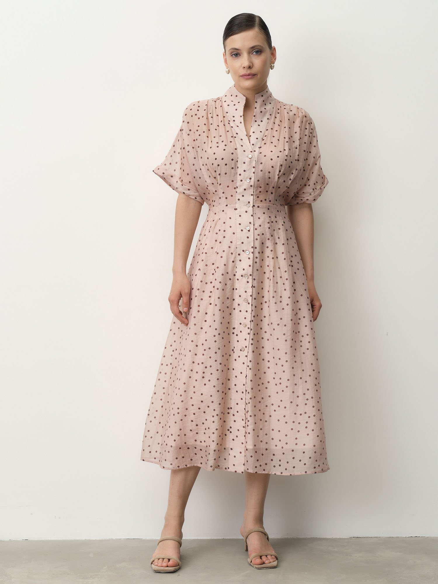 Платье из тенселя в пудровом оттенке с деликатным горошком — это воплощение лёгкости, романтики и утончённого стиля. Лёгкий пастельный цвет придаёт образу мягкость и нежность, а классический принт «в горошек» добавляет игривого шарма и винтажного очарования. Пудровый оттенок — нежный, благородный и универсальный. Он подходит к любой внешности и легко комбинируется с базовыми цветами Принт «горох» создаёт визуальный ритм и добавляет ретро-нотку, но при этом сохраняет современность Такая модель подойдёт как для повседневной носки, так и для особых случаев, когда хочется выглядеть безупречно, не теряя ощущения комфорта.