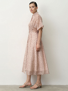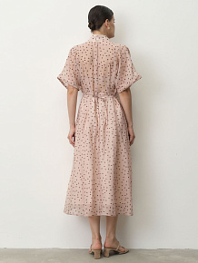 Платье из тенселя 90501 пудровое в горошек