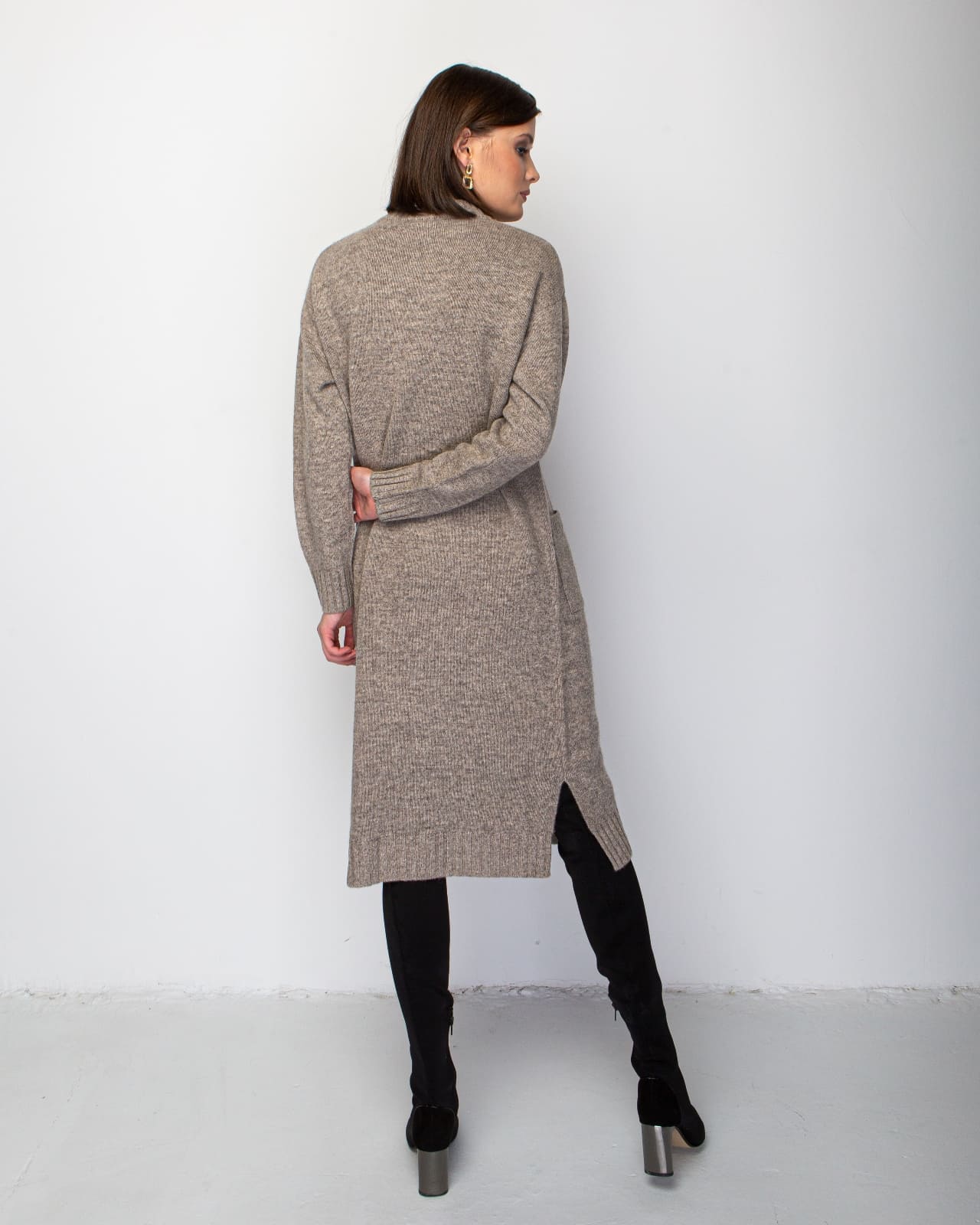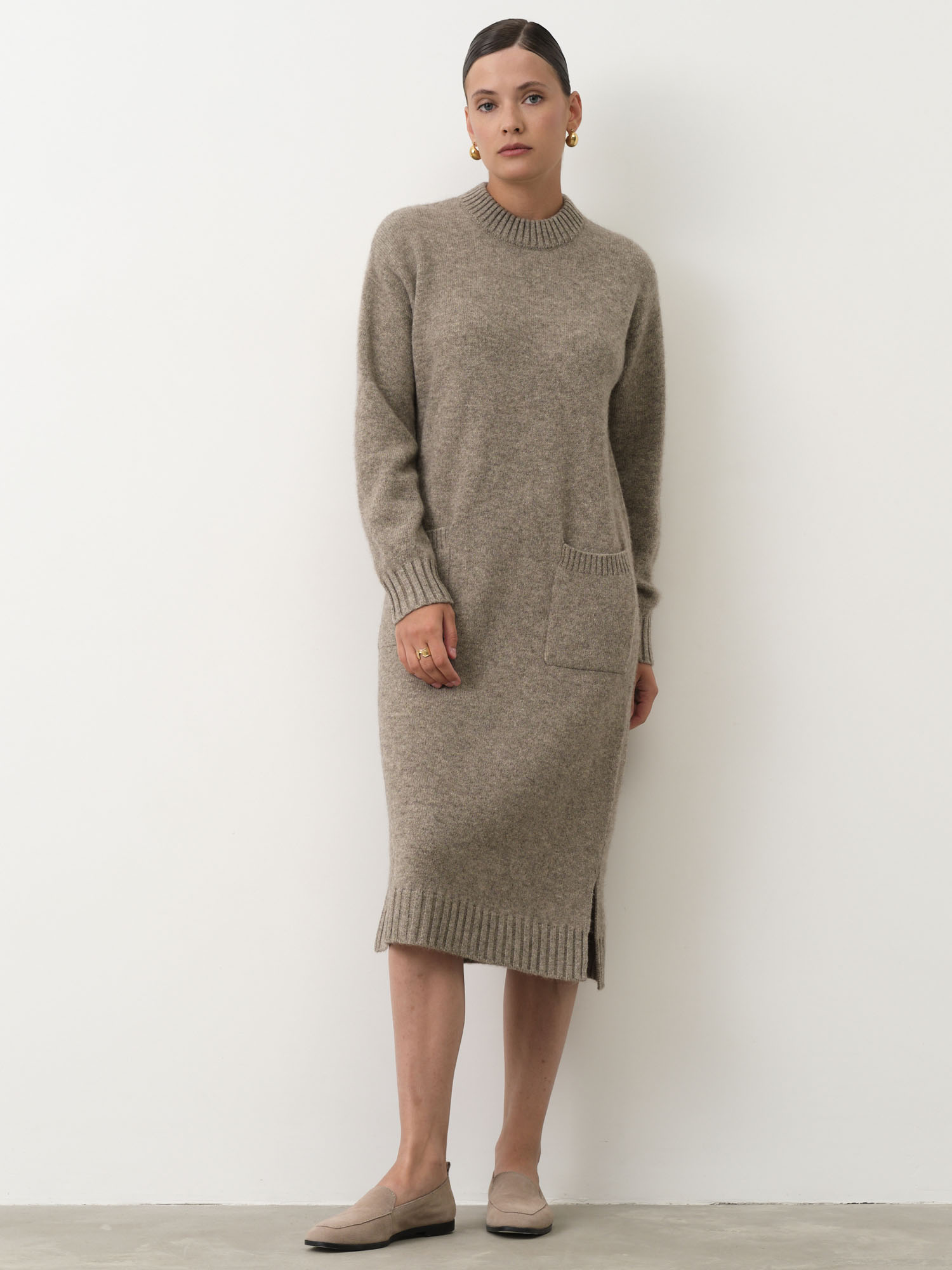 Серое платье из пуха яка — это незаменимый элемент гардероба для холодного времени года. Выполненное из мягкого и теплого пуха яка, платье обладает отличными терморегулирующими свойствами, сохраняя тепло и обеспечивая комфорт в любую погоду. Модель прямого кроя с длинными рукавами и удобными карманами на передней части подчеркнет Вашу элегантность и чувство стиля. Нейтральный серый цвет легко сочетается с любыми аксессуарами и обувью, что делает это платье универсальным выбором для повседневной носки или деловых встреч.
