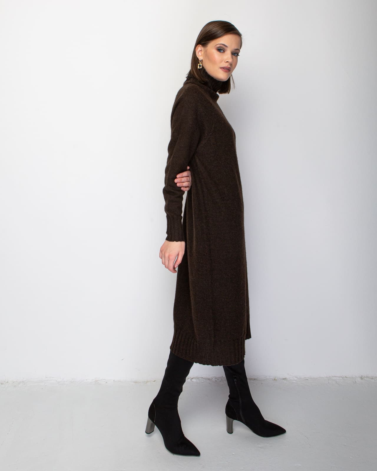 Свободный крой и длина миди позволяют легко комбинировать платье с любыми элементами гардероба — от сапог до ботинок. Этот оттенок темного шоколада подчеркнет Вашу индивидуальность и легко впишется в любой повседневный или деловой образ.