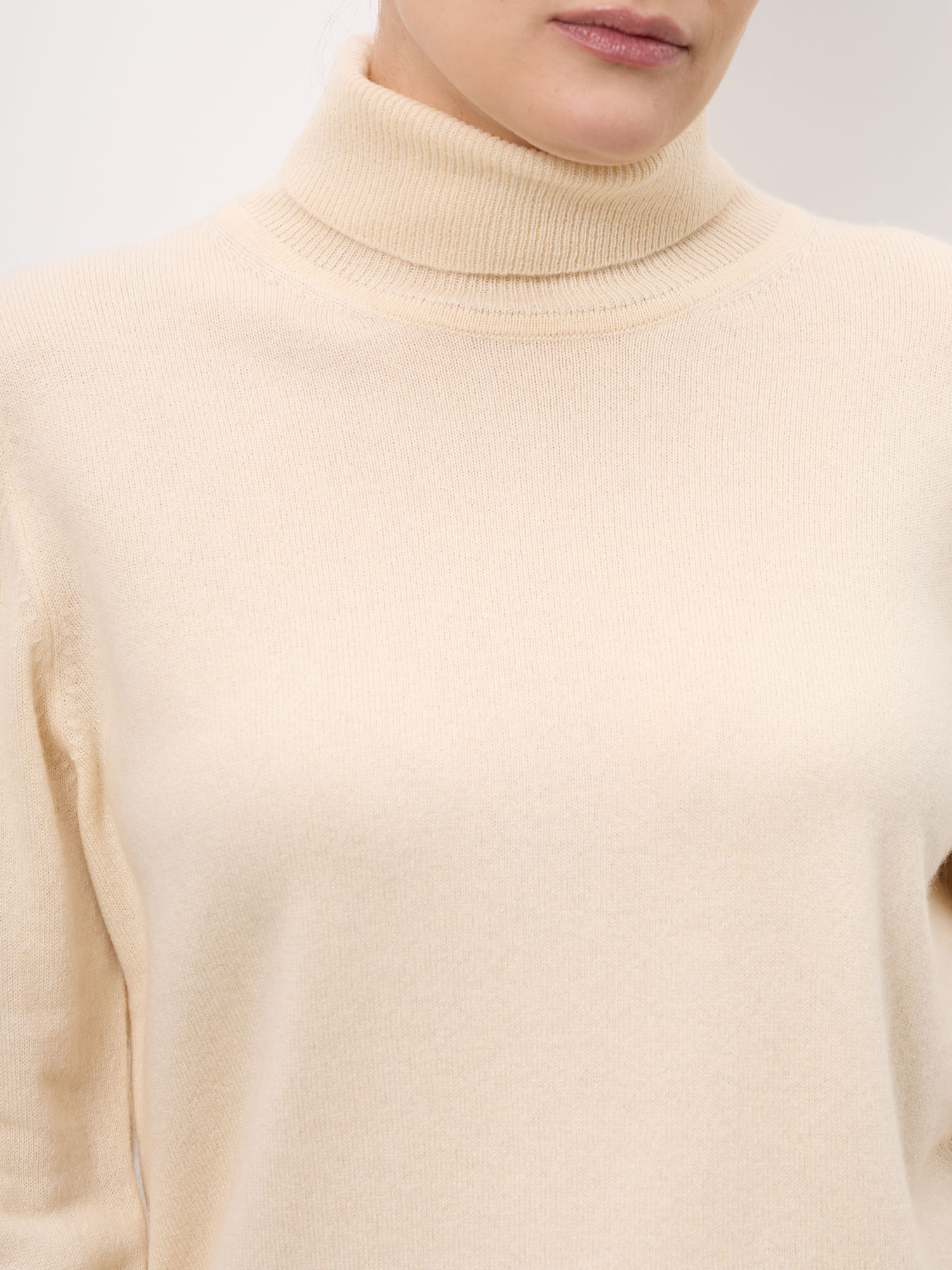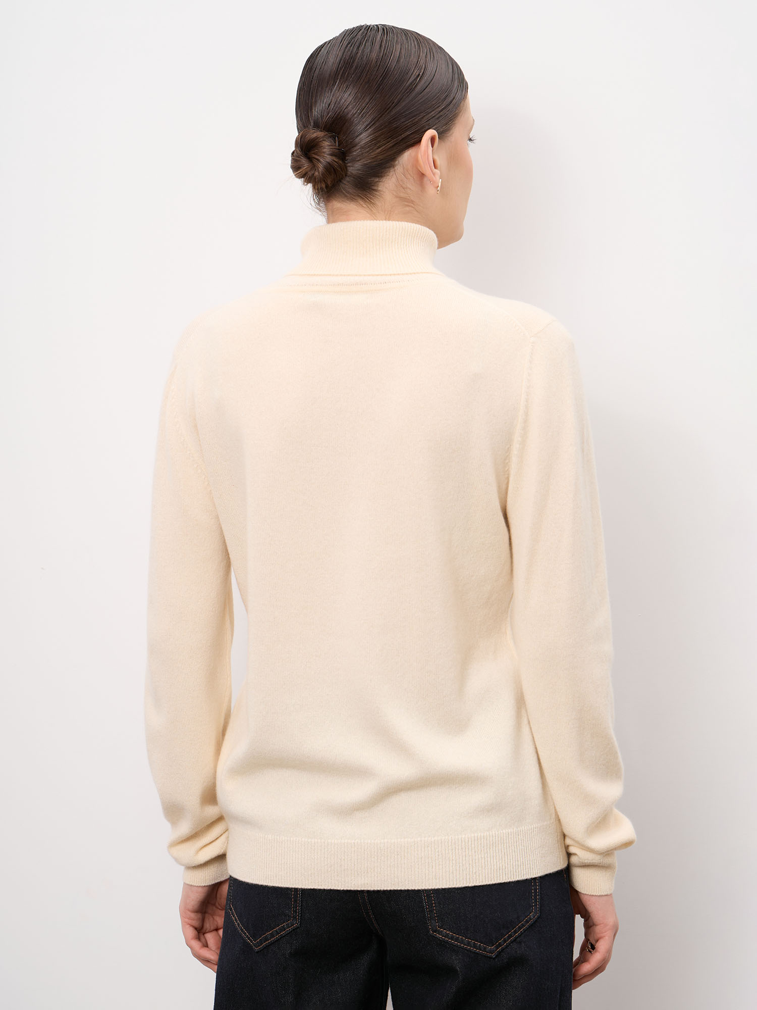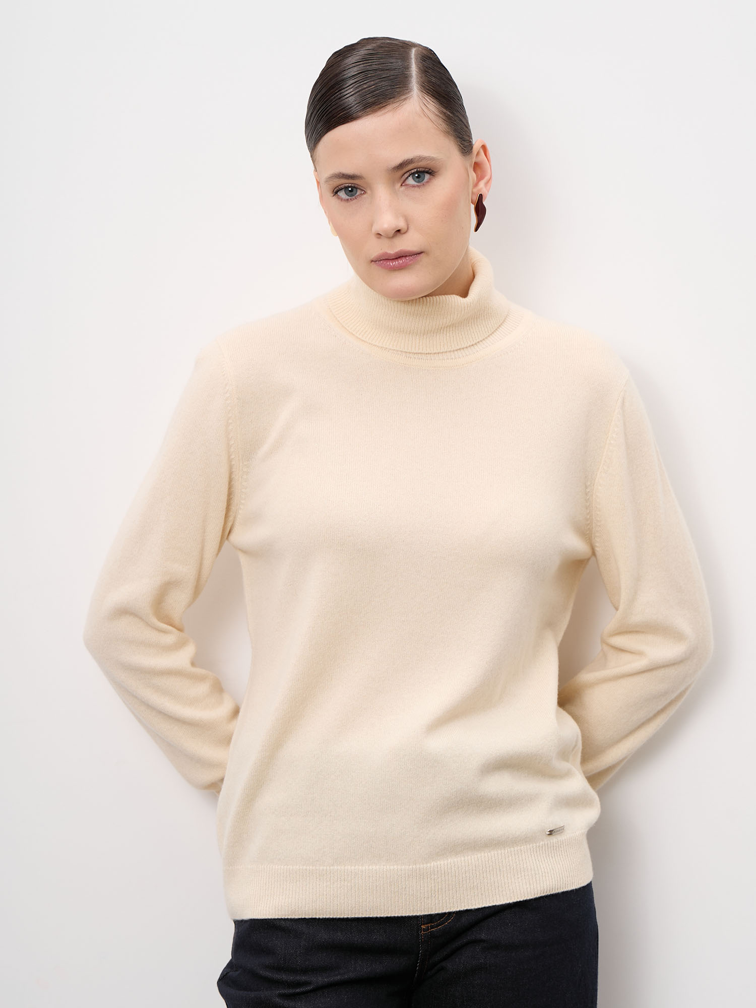 Элегантная женская водолазка из натурального кашемира выполнена в универсальном кремовом оттенке. Мягкая, лёгкая и невероятно приятная к телу, она обеспечивает комфорт в течение всего дня и идеально подходит для холодного сезона.